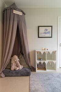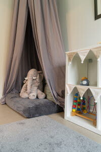 Barnavdelning som bjuder in till bland annat lek, pyssel, målning, hantverk, sagostunder, amningshörna och gemenskap